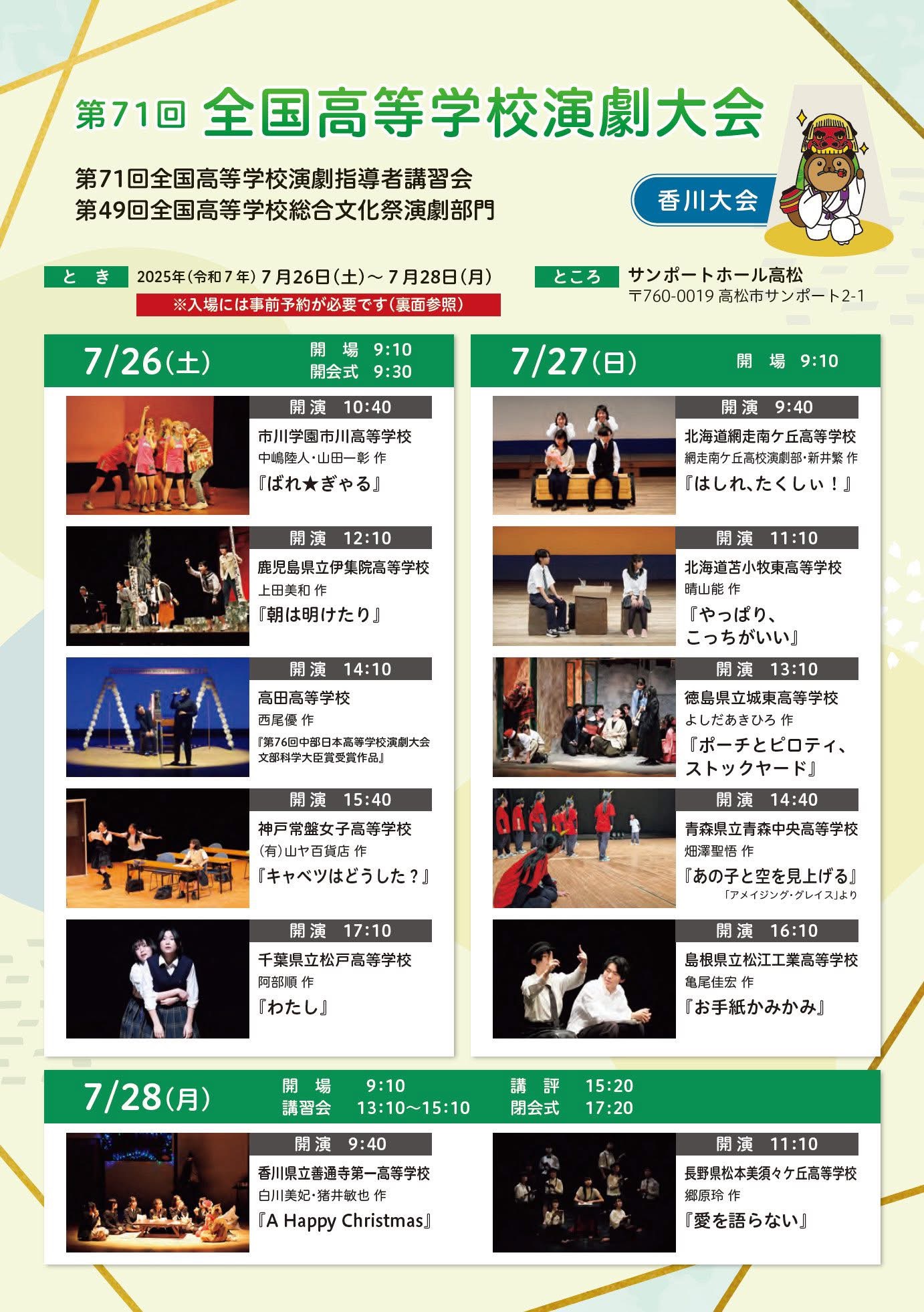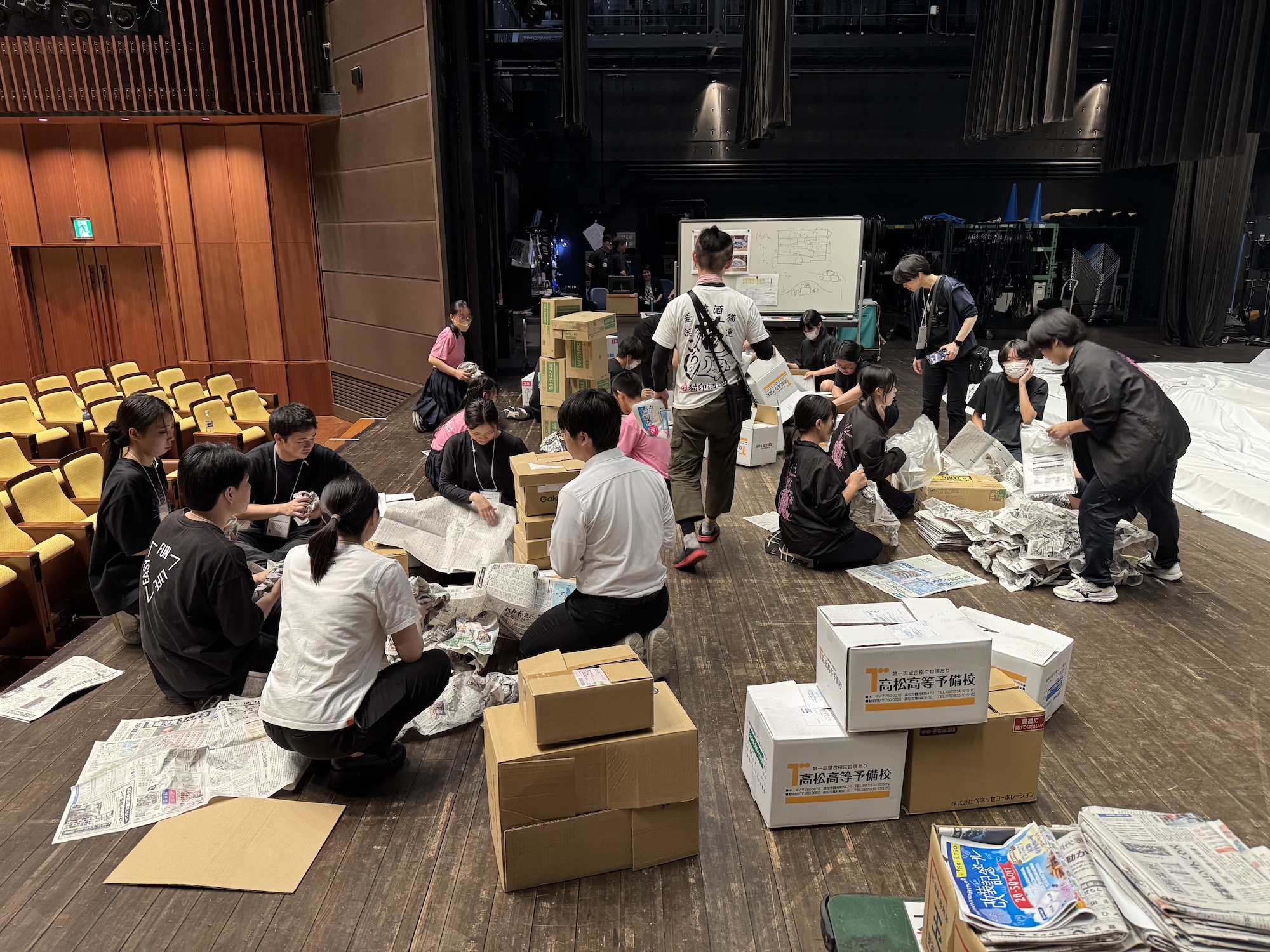 2025年7月26日~28日に、香川県高松市内のサンポートホール高松にて 『第71回全国高等学校演劇大会』 (主催:全国高等学校演劇協議会)が開催され、その一環として「舞台技術創造講習」が行なわれました。昨年に続き意欲的な生徒たちを迎え、学びの多い講習会を開催する事ができました。