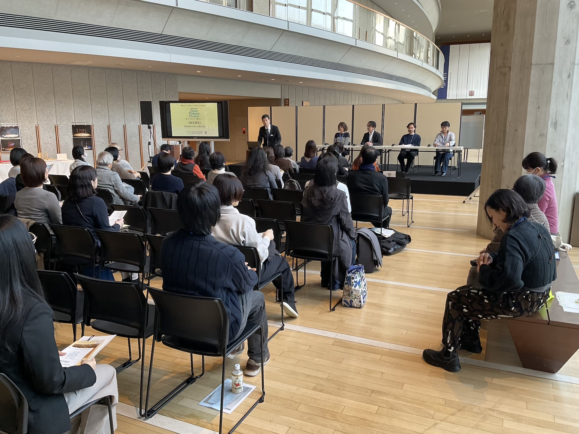 後半の部では、大沢氏をはじめ第1部の登壇者に加え、現地に同行した前理事長の伊藤氏、そして視力低下により視覚に障害を持ち、自ら新国立劇場の観劇サポートを実際に利用している今立氏が登壇しました。今立氏からは、「触る模型」を利用する当事者の視点からの率直な感想や意見が語られ、触覚によって舞台空間を理解することの意味や可能性について、具体的な言葉で共有されました。登壇者同士の意見交換を通して、今後の展望や課題についてもビジョンが示され、最後には来場者を交えた質疑応答の時間が設けられました。